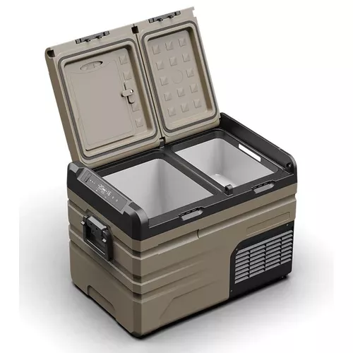 Geladeira Automotiva TOP45D, com compartimentos de armazenamento duplo com controle de temperatura independente para resfriamento e congelamento simultâneos, permitindo que você mantenha medicamentos, carne fresca, frutos do mar ou sorvete na temperatura desejada durante a viagem. A bateria destacável opcional pode durar de 4 a 6 horas e pode ser recarregada por energia solar, para que você possa acampar fora da rede sem limite de tempo. Com sua construção robusta, esta série é realmente um bom assistente para viagens ao ar livre.